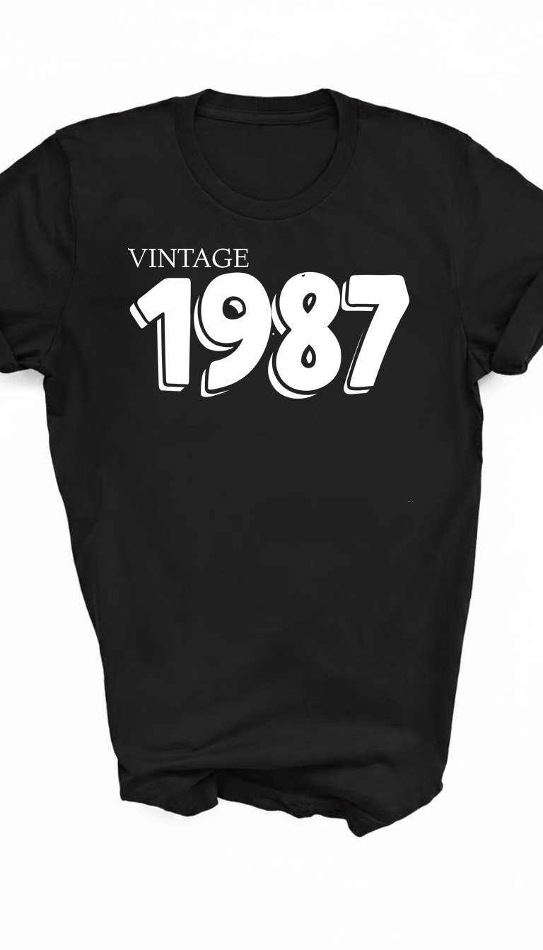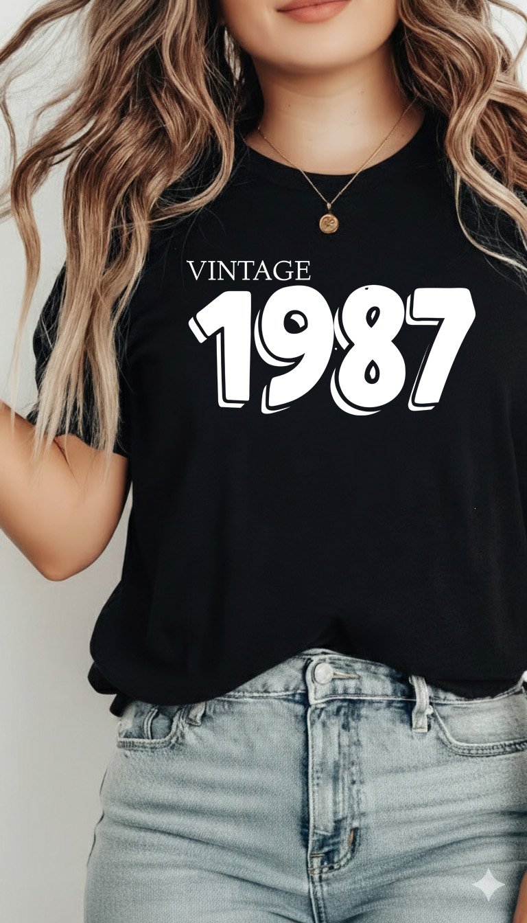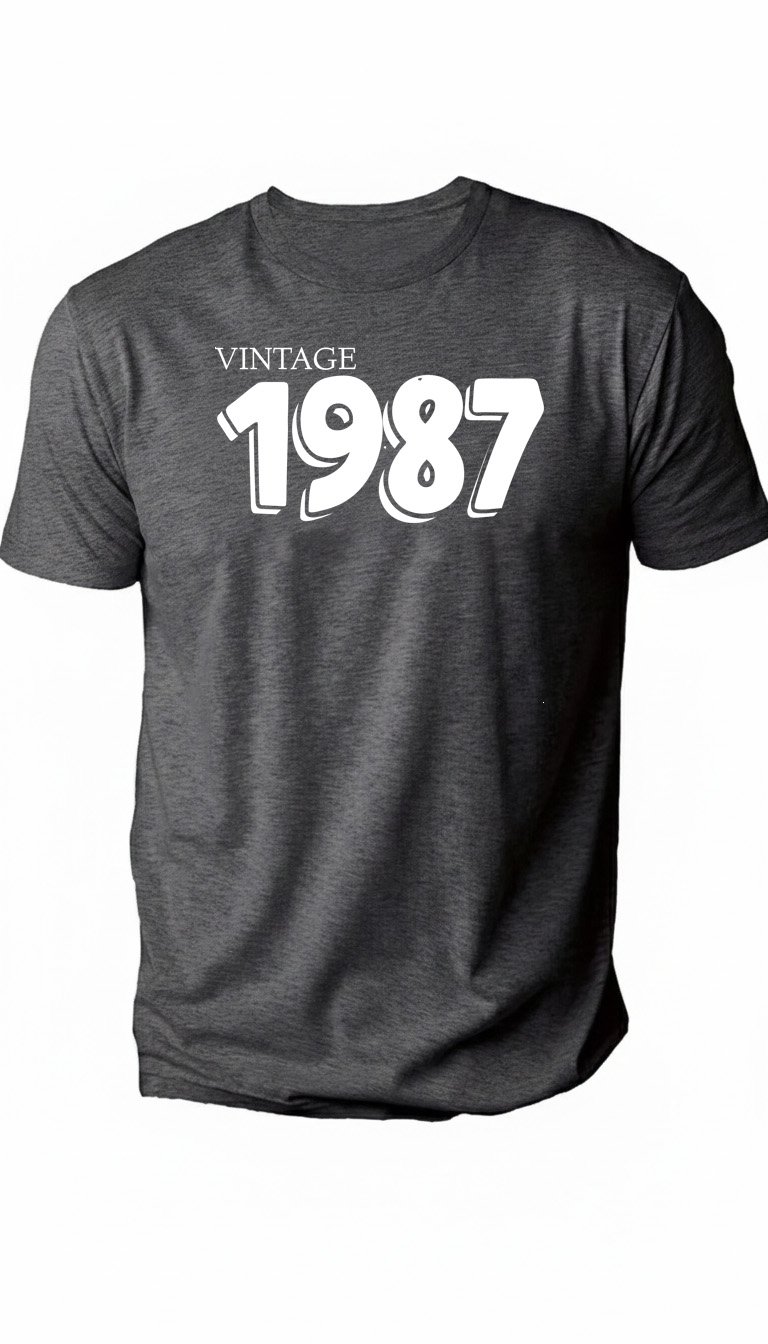 Celebrate a standout year with our Vintage 1987 tee. This design pairs a classic "VINTAGE" serif header with "1987" in a bold, "puffy" 3D-style font that brings a fun, nostalgic vibe to any outfit. A GetMiniLoves original, this "Mini Love" essential is a top-tier gift for 39th birthday celebrations, anniversaries, or anyone proud to represent their 1987 roots. Soft, durable, and effortlessly cool—because true originals only get better with age. 🎂🎸🔥