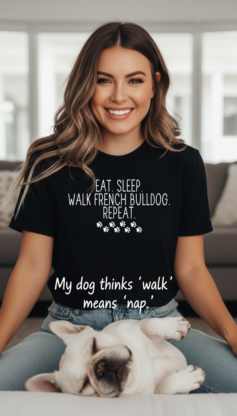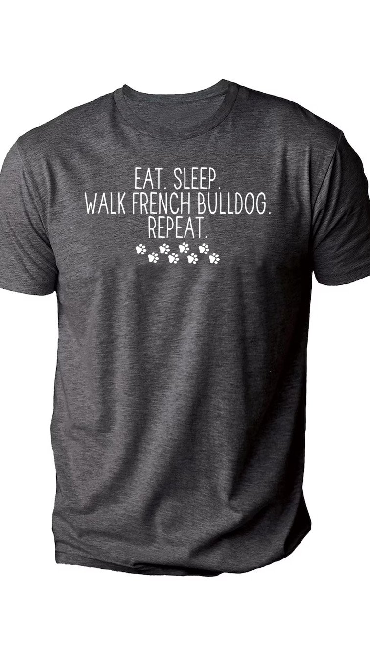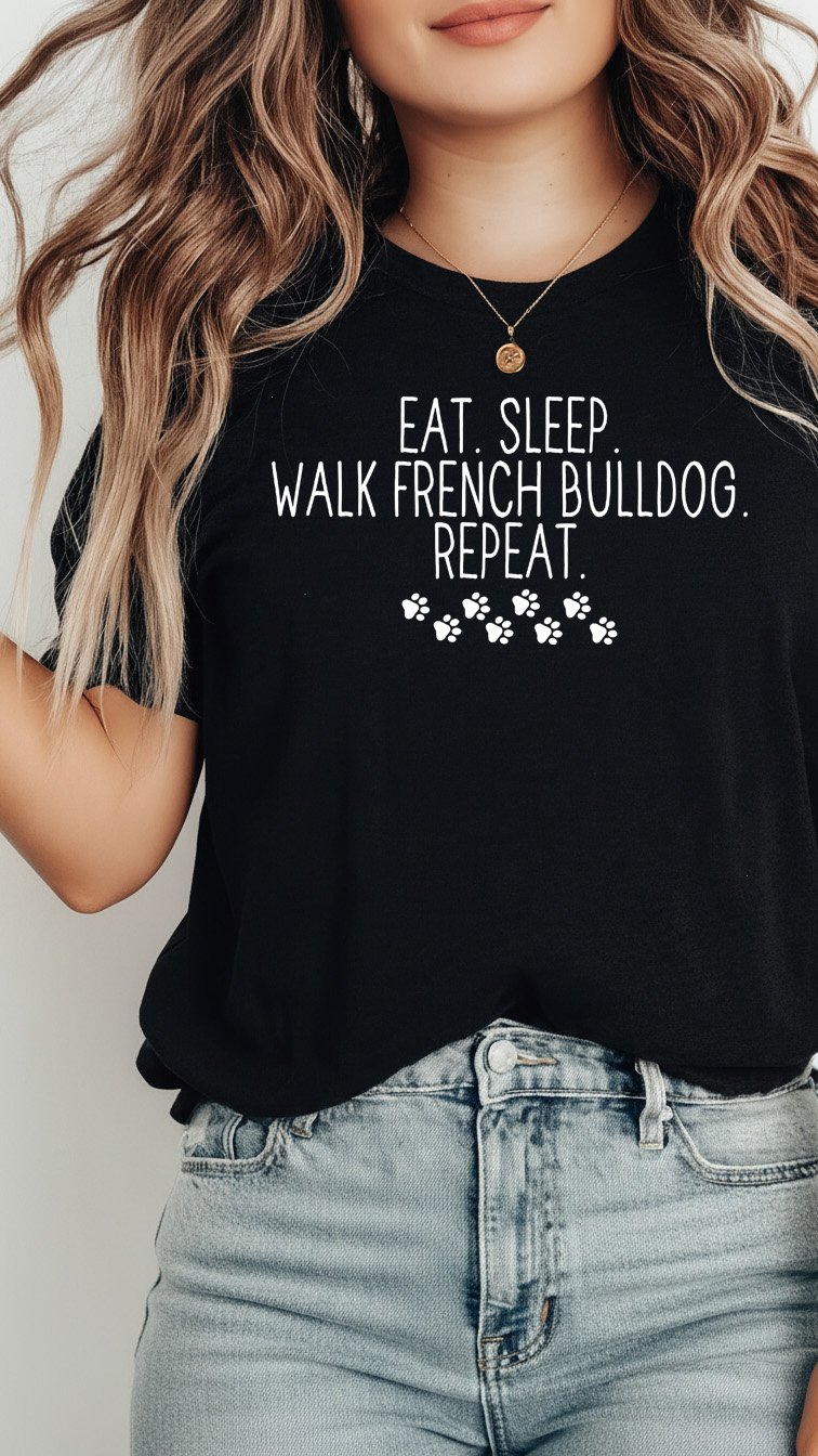 Eat Sleep Walk French Bulldog Repeat T-Shirt - Frenchie Mom Tee - Funny Bat Pig Gift