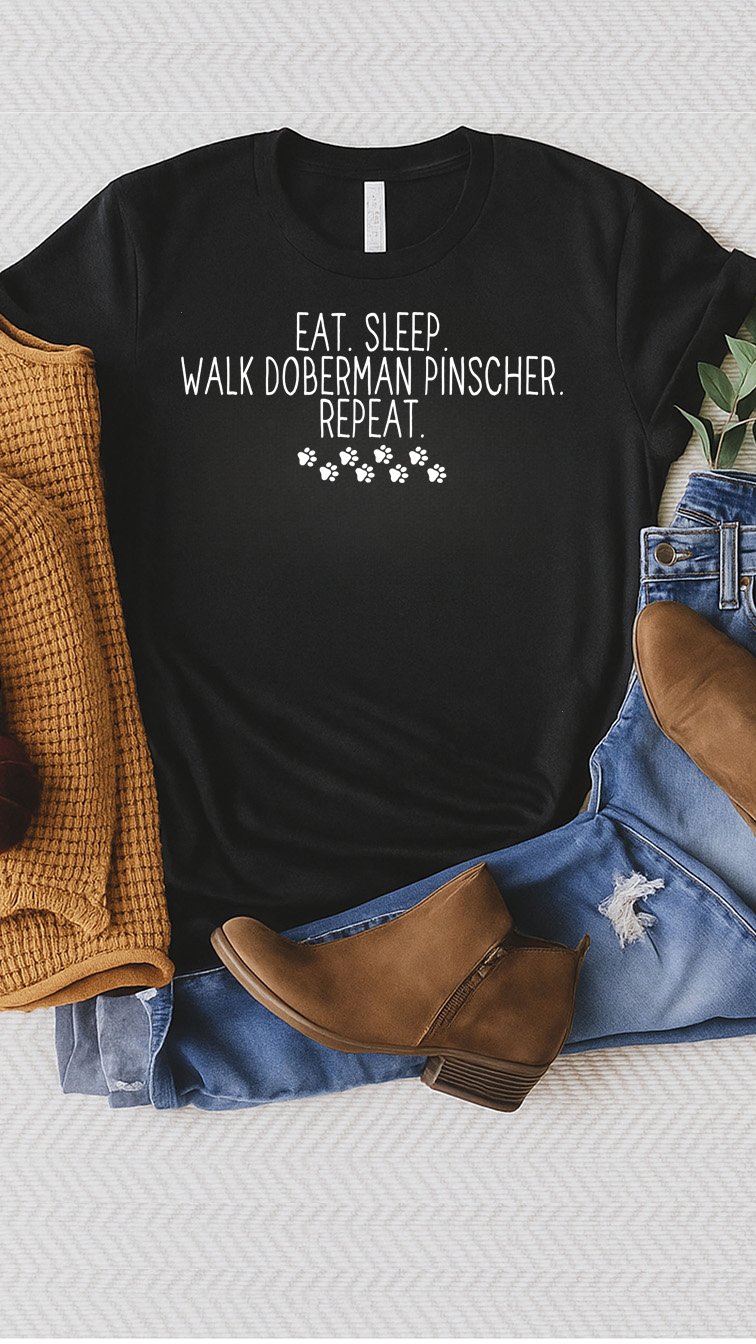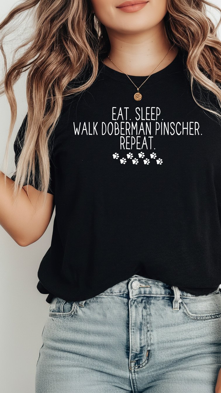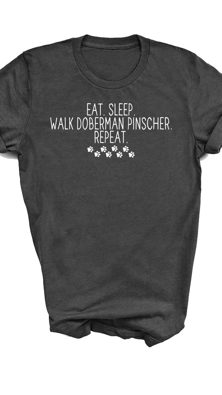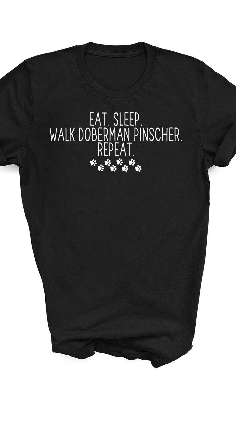 Eat Sleep Walk Doberman Pinscher Repeat T-Shirt - Doberman Mom Tee - Sleek Guardian Dog Lover Gift