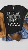 Akita Dog Mom Gift - Eat Sleep Walk Akita Repeat T-Shirt - Funny Dog Lover Mother's Day Tee