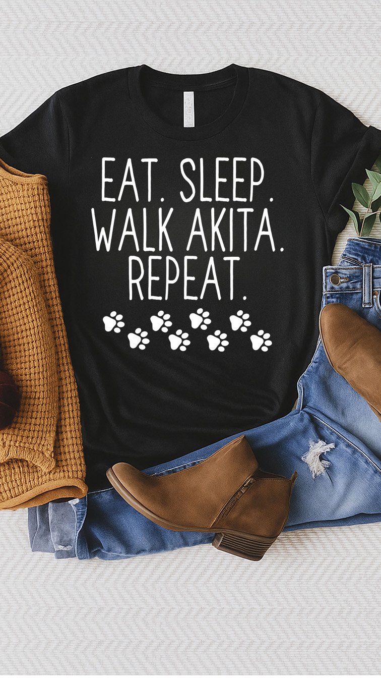 Looking for the ultimate Akita mom gift? This "Eat Sleep Walk Akita Repeat" t-shirt is the perfect uniform for morning walks, dog park visits, and cozy snuggles with your favorite pup. A must-have for dog lovers who want to show off their Akita pride in style! πΎπ