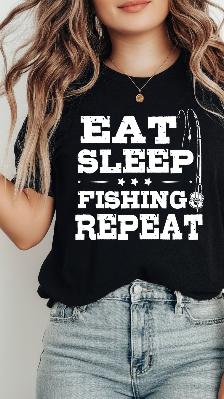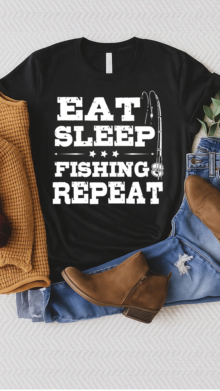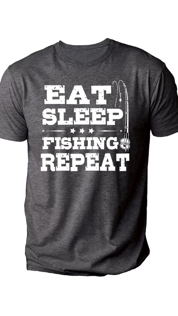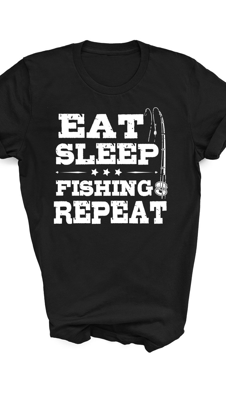 Looking for the ultimate gift for fishermen? This "Eat Sleep Fishing Repeat" shirt is the perfect uniform for long days at the lake, early mornings on the boat, or relaxing by the water. A must-have for fishing enthusiasts who live for the next big catch! 🎣🐟