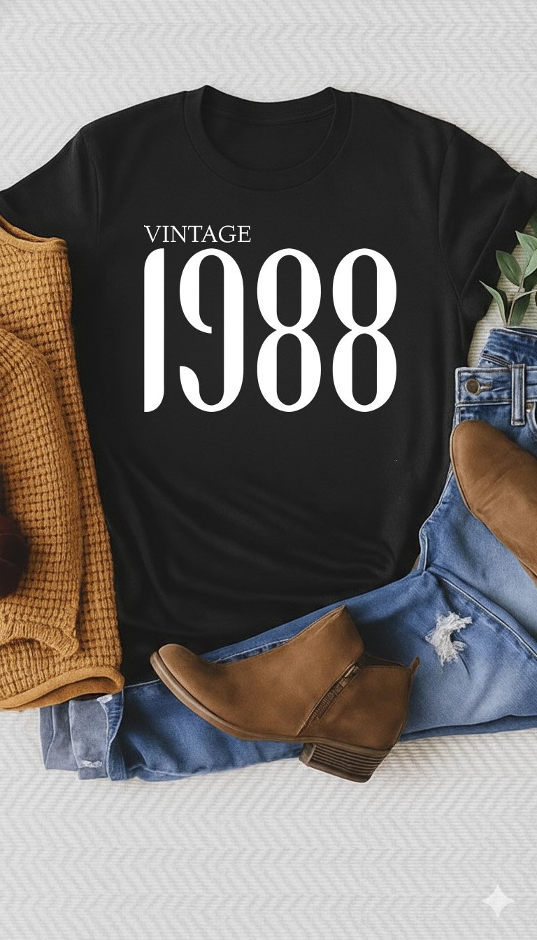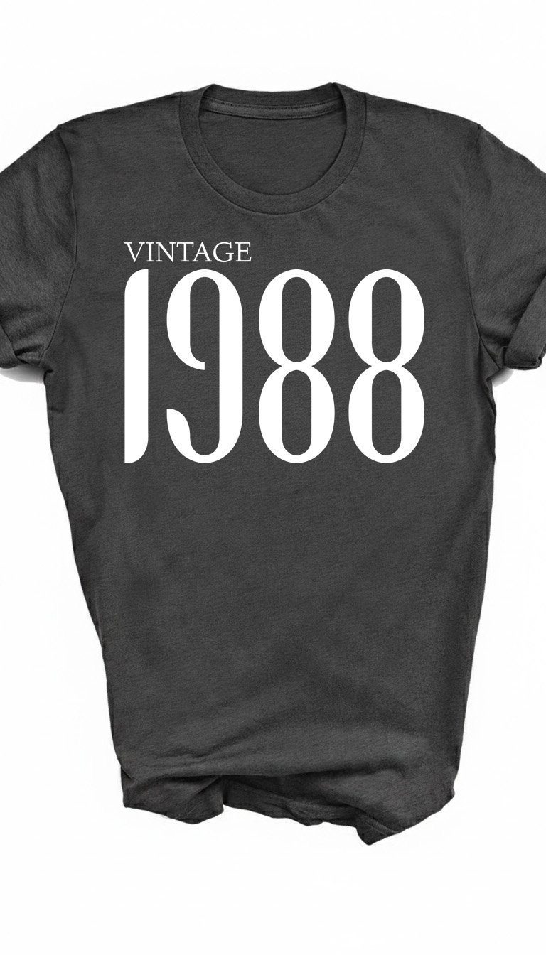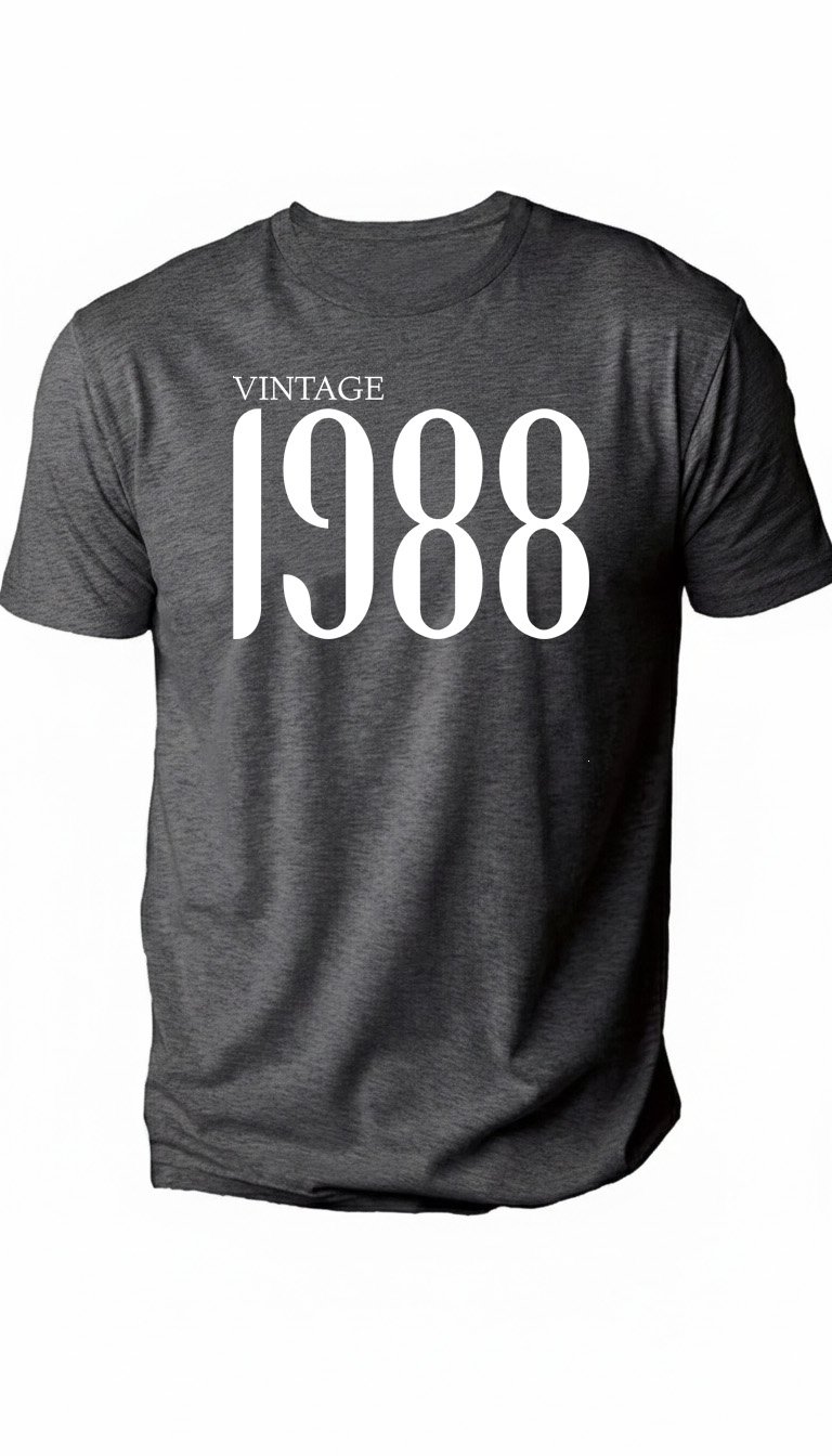 Step into a classic era with our Vintage 1988 tee. This design features a sophisticated "VINTAGE" header paired with "1988" in a bold, elongated serif font that commands attention with its timeless, high-contrast aesthetic. A GetMiniLoves original, this "Mini Love" staple is an ideal gift for 38th birthday celebrations, anniversaries, or anyone proud to represent the late 80s. Soft, high-quality, and classically cool—because legends are perfected over decades. 🎂🎸✨