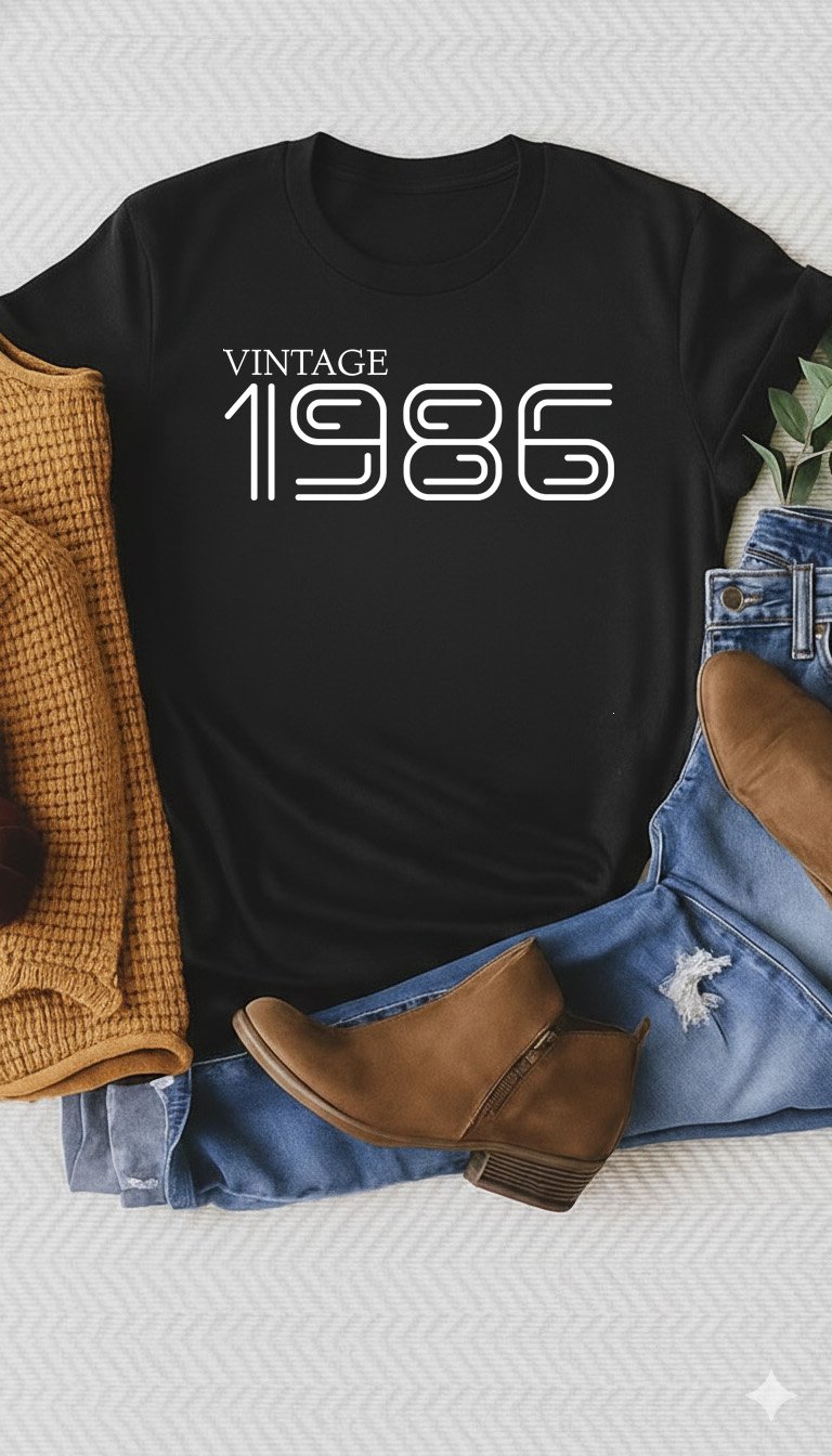 Celebrate a major milestone with our Vintage 1986 tee. This design features a sophisticated "VINTAGE" serif header above "1986" rendered in a unique, multi-line "neon tube" font that perfectly captures the high-energy aesthetic of the mid-80s. A GetMiniLoves original, this "Mini Love" favorite is the ultimate gift for 40th birthday celebrations, class reunions, or anyone proud to represent their 86' roots. Soft, high-quality, and classically cool—because legends only get better with age. 🎂🎸✨