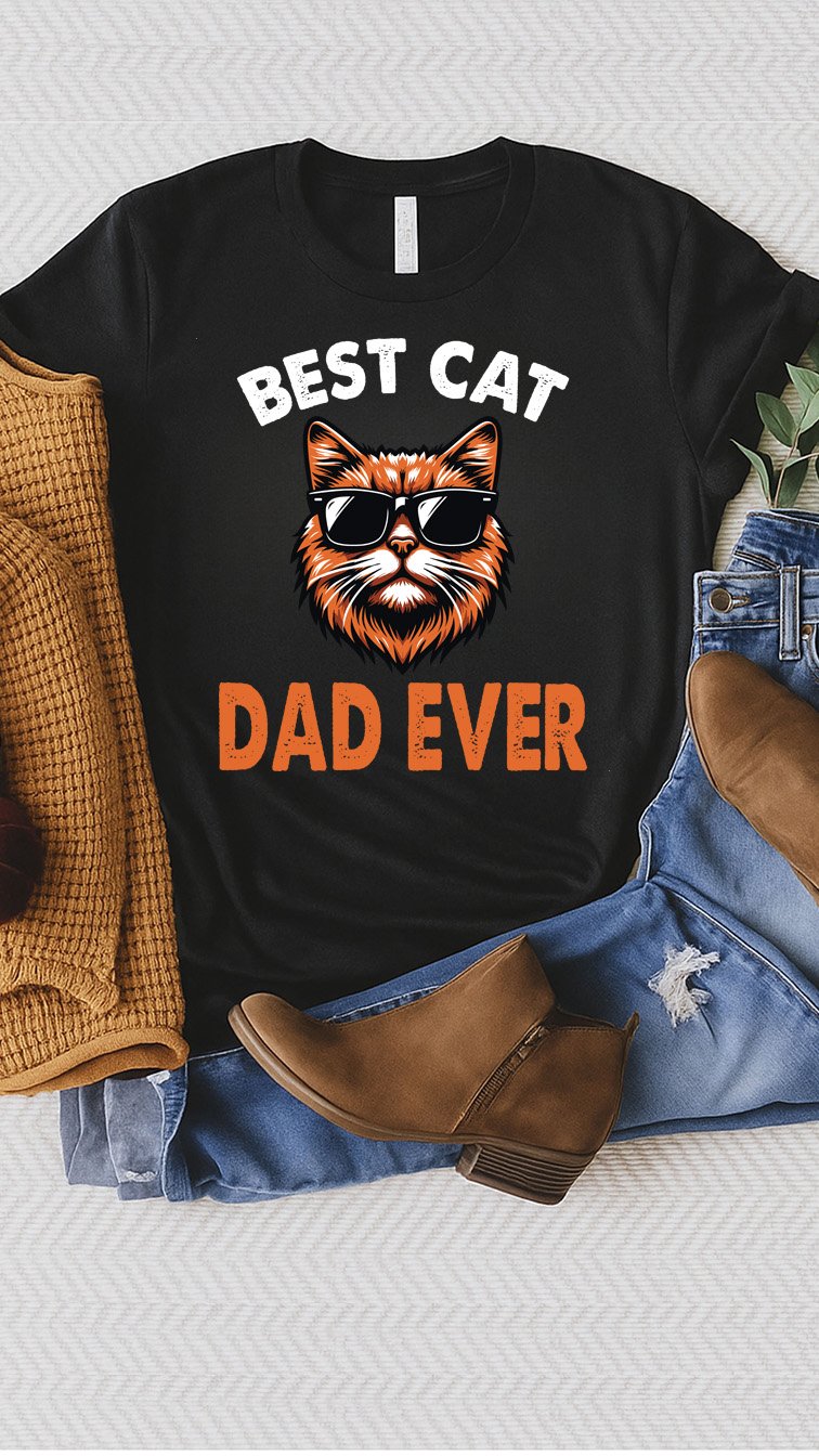 Looking for the ultimate gift for cat dads? This "Best Cat Dad Ever" t-shirt features a cool, confident cat rocking a pair of sleek sunglasses, making it the perfect choice for Father's Day, birthdays, or just showing off that feline bond. A must-have for proud cat dads who know that life is better with a cat by your side! 🐈🕶️