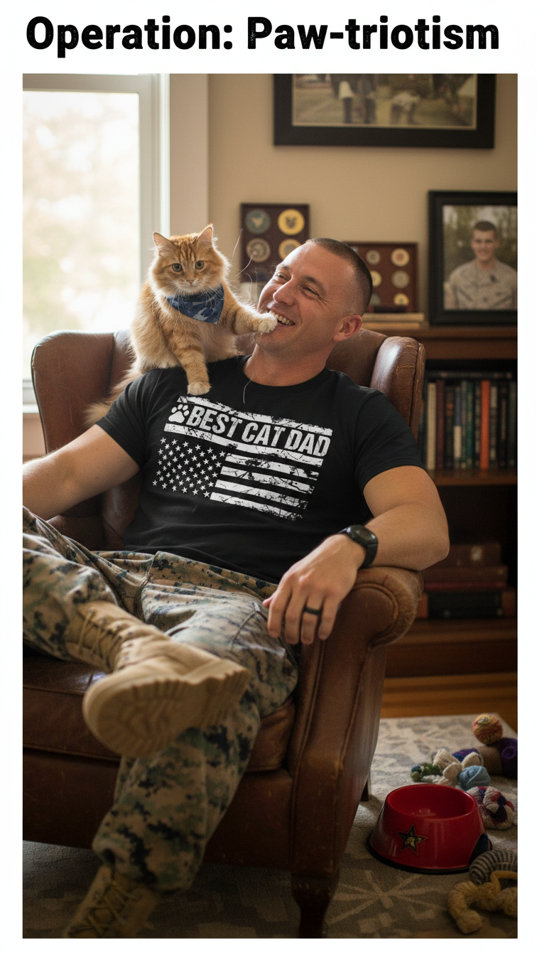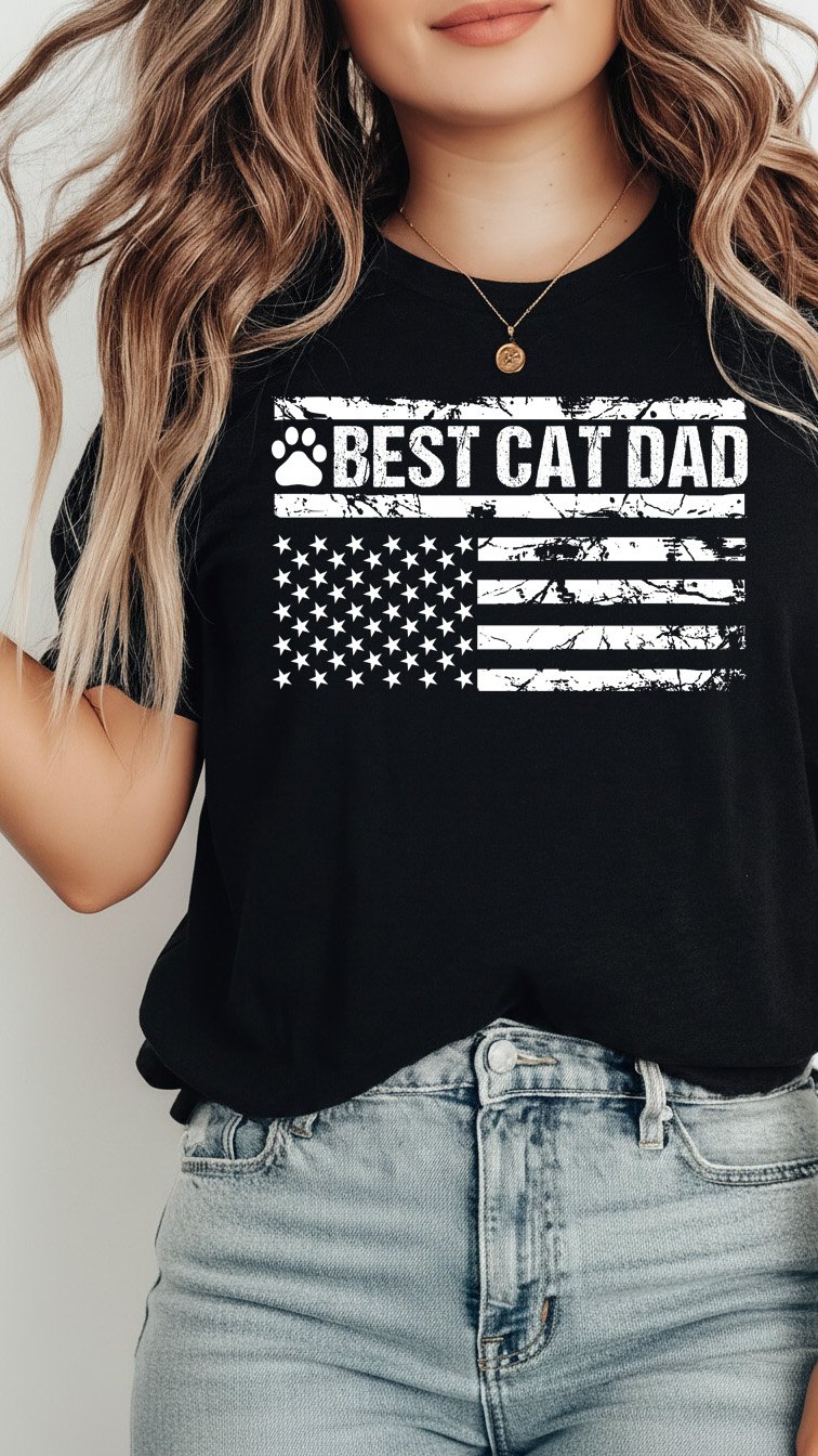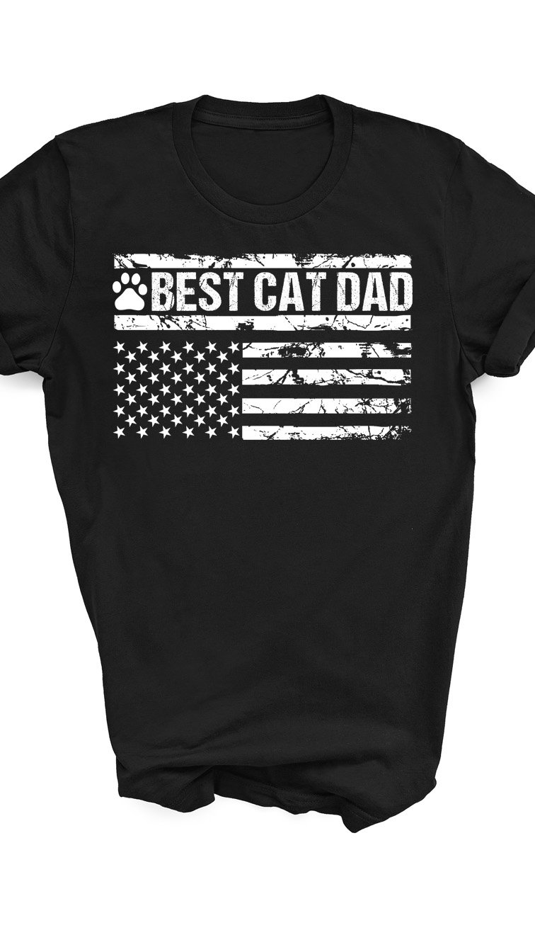 Best Cat Dad T-Shirt - Patriotic American Flag Cat Lover Tee - Gift for Proud Cat Dads