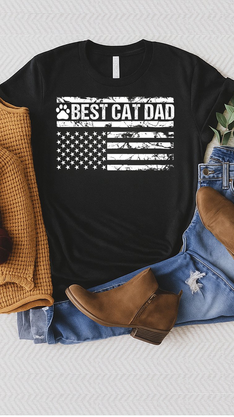 Looking for the ultimate gift for cat dads? This "Best Cat Dad" American flag t-shirt is the perfect way to combine patriotic style with feline pride. A must-have for proud cat dads who want to show off their love for their furry friends and their country in one comfortable look! ππΊπΈ