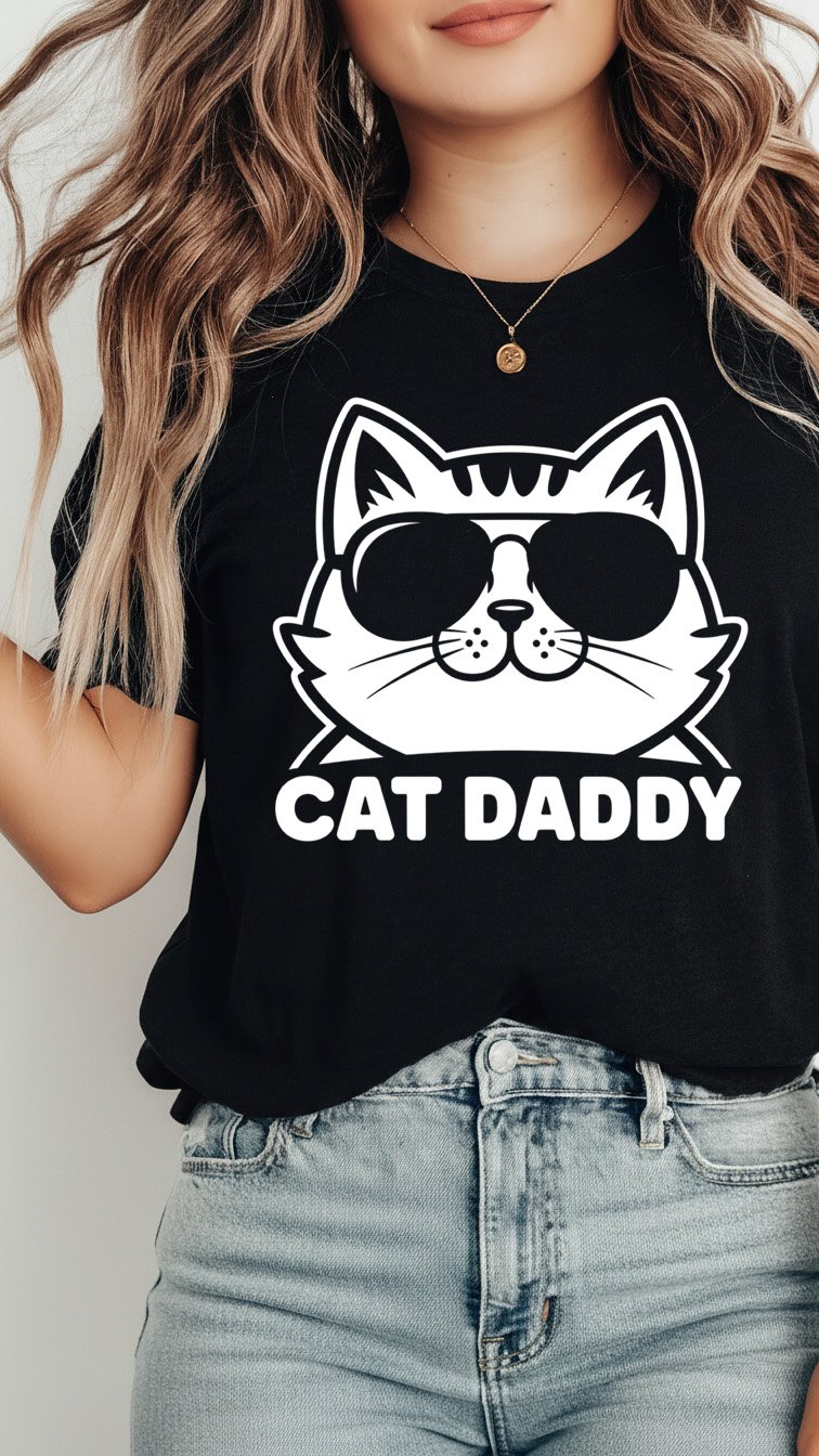 Looking for the ultimate gift for cat dads? This "Cat Daddy" t-shirt features a cool, confident cat rocking a pair of sleek sunglasses, making it the perfect choice for Father's Day, birthdays, or just showing off that feline bond. A must-have for proud cat dads who know that life is better with a cat by your side! 🐈🕶️