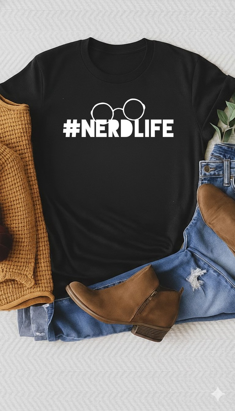 Celebrate your passions with our #NERDLIFE tee. This high-impact design features a pair of classic round spectacles above bold, blocky typography. A GetMiniLoves original, this is the perfect uniform for gamers, tech enthusiasts, book lovers, or anyone who wears their "nerd" badge with pride. Whether you're at a convention or a coffee shop, do it in style. 👓🎮📚